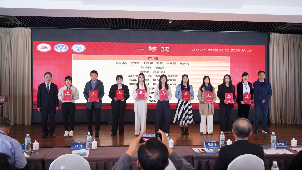 开幕式环节举行了优秀论文颁奖,六色网 师生投稿的学术论文《数字经济能否提升海洋环境质量?——来自中国沿海省市的实证》荣获2025届中国海洋经济论坛一等奖。